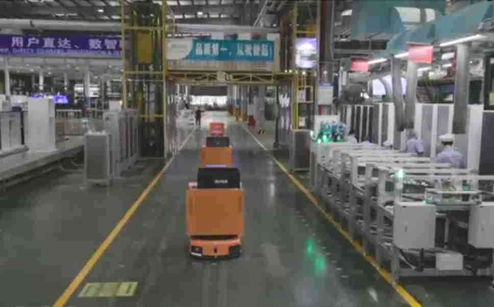 为车载冰箱物流配送打造的智能解决方案,,,,包含产中物流通过潜伏举升AMR搬运至线边,,,产后成品物流智能仓储,,,,流程包含产中物流智能齐套入库,,线边安灯叫料AMR智能配送至线边,,,,成品入库、、、、出库,,,通过无人堆高车机器人,,,,智能仓储管理替代人工作业管理,,,实现更高存储、、、、更高效率、、更具柔性化的解决方案。。。。
